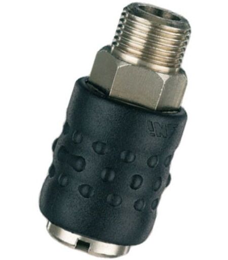Rubinetto attacco rapido Filetto maschio Cappellotto antiurto nylon nero Impiego universale con ogni tipo di innesto Ottone nichelato ...