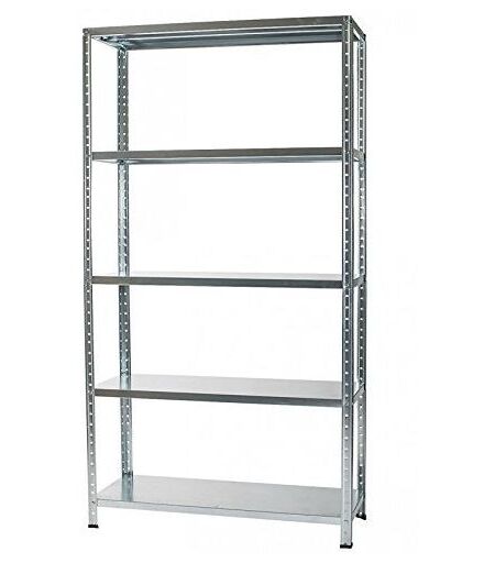 Scaffale bullonato Ripiani 5 Misure 100x40x87 4 piedini 8 angolari Zincato Scaffale in Kit 100x40x87 cm Fissaggio bulloni, composizione 5 ripiani cm 100x40x87, 1 rinforzo, 8 angolari, 4 piedini in plastica, peso Kg 13, 5. ...