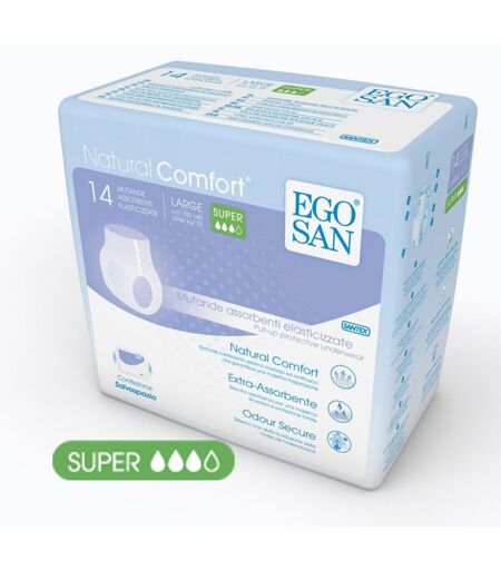 Mutande Assorbenti Elasticizzate Egosan - 3 Gocce Misura Extra large Confezione Da 84 Pz I Pants assorbenti Elasticizzati egosan Natural Comfort Sono Caratterizzati Dalla Morbida Cintura Senza Adesivi Che Consente Di Indossare Il Prodotto Come Normale Biancheria Intima. L’apertura A Strappo s ...