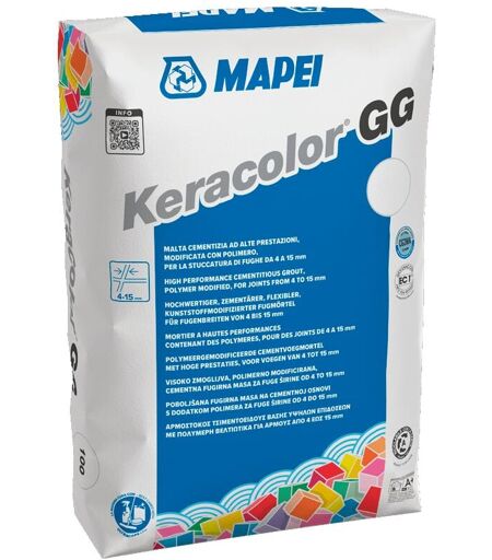 Malta cementizia preconfezionata ad alte prestazioni, modificata con polimero, per la stuccatura di fughe da 4 a 15mm. durata dell'impasto: ca. 2 ore. tempo di attesa prima della finitura: 10-20 minuti. pedonabilità: ca. 24 ore. messa in esercizio: 7-10 giorni. applicazione con spatola in gomma mapei o racla. emicode: ec1 plus - a bassissima emissione. keracolor gg è una malta cementizia (c) per fughe (g), migliorata (2) ad assorbimento d'acqua ridotto (w) e alta resistenza all'abrasione (a) di classe cg2wa. stuccatura di fughe di piastrelle in pareti e pavimenti di abitazioni civili. stuccatura di fughe di piscine. stuccatura di pavimenti con superficie particolarmente liscia e lucida (porcellanato levigato, marmi prelevigati, piastrelle smaltate). stuccatura di pavimentazioni industriali in ceramica, dove non è richiesta resistenza agli agenti chimici (autorimesse, magazzini, ecc.). ...