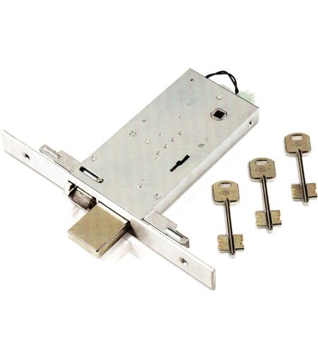 SERRATURA ELETTRICA FEB ART 6903/SA MM 70 Misura : 70 mm. Frontale : 28 mm. Per fasce - Doppia mappa - Chiusura triplice - Scrocco e catenaccio 4 mandate - Ambidestra - Versione tradizionale non intercambiabile con serratura art. 6973 - Dimensione 165x81 mm. - Inox - Tensione 12 volt ...