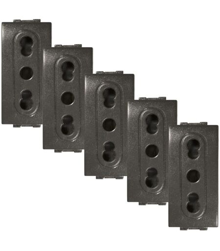 FEB 14045/K - Confezione 5 pezzi Presa Bivalente Sicurezza, Grigio Scuro -