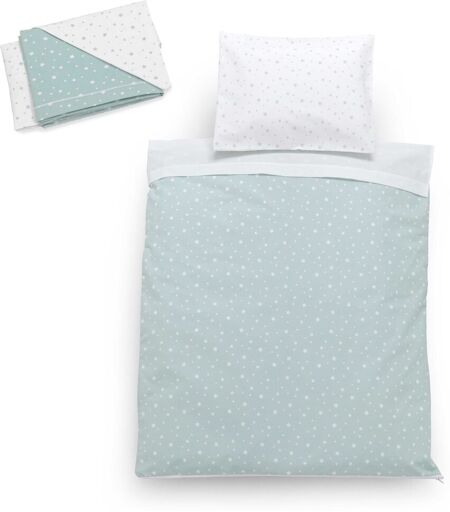 Il set è composto da: piumotto sfilabile (70x80cm), federa cuscino (44x30cm), lenzuolo superiore (81x108cm) e lenzuolo inferiore con angoli (53x84cm). Tessuto esterno: 100% cotone e materiale interno 100% fibra poliestere. ...