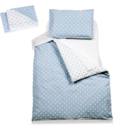 Il set è composto da: piumotto sfilabile (70x80cm), federa cuscino (44x30cm), lenzuolo superiore (81x108cm) e lenzuolo inferiore con angoli (53x84cm). Tessuto esterno: 100% cotone e materiale interno 100% fibra poliestere. ...