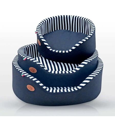 Marina è una cuccia ovale per cani in cotone e imbottitura interna. Presenta alte sponde laterali con lato di ingresso ribassato. Made in Italy.Misure disponibili 40cm - 50cm - 60cm ...
