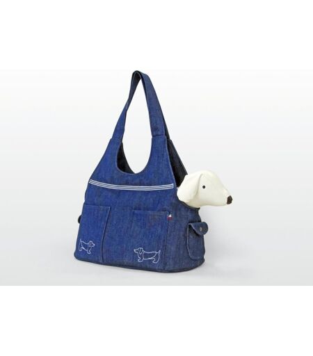 Borsa/trasportino per cani in tessuto denim 100% cotone con ricami. Tasche esterne e fondo rinforzato sfoderabile e lavabile.MADE IN ITALY Misure: 45x22x28cm ...