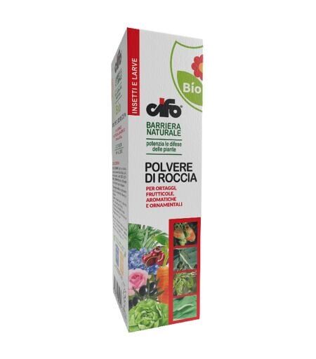 POLVERE DI ROCCIA INSETTI E LARVE Polvere di roccia è una sospensione micronizzata in acqua, di rocce costituite di chabasite e minerali vulcanici macinati tal quali ed esenti da elementi inquinanti. Il preparato è consentito in agricoltura biologica, in grado di attivare le difese naturali delle piante nei confronti di insetti e funghi. Polvere di roccia nebulizzata su foglie e frutti crea una barriera protettiva nei confronti di insetti masticatori quali Nottue, Cavolaie, Tripidi, Coleotteri e Larve Minatrici. In aggiunta, grazie alla sua azione disidratante, protegge le piante da attacchi di patogeni fungini. Utilizzare il prodotto durante l’intero ciclo vegetativo delle piante. Ideale per le piante orticole (peperone, melanzane, pomodoro, peperoncini, insalate, fragole, cipolle, zucchine, cavoli, ecc.), aromatiche, frutticole e ornamentali. Utilizzare il prodotto ogni 15 giorni circa. Diluire 5-10ml di prodotto in 1 lt di acqua e nebulizzare uniformemente sulla pianta Confezione: ...