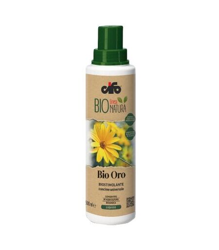 BIOSTIMOLANTE-CONCIME UNIVERSALE LIQUIDO BIO ORO BioNatura Biostimolante, concime universale liquido, consentito in agricoltura biologica, per tutte le piante d’appartamento, balcone, giardino, orto e per il prato. A base di pregiate materie prime, indicato per favorire lo sviluppo di tutte le piante. Gli aminoacidi e le vitamine contenuti, in associazione a specifiche componenti organiche, conferiscono a Bio Oro un’attività stimolante nella formazione di nuovi tessuti (germogli, fiori, frutti). L’utilizzo del formulato migliora le funzioni delle piante già dopo la prima applicazione, scatenandone la crescita. Promuove la fioritura, favorisce la formazione dei frutti, migliora l’accrescimento e la maturazione degli ortaggi, favorisce l’infoltimento dell’erba del prato. È indicato per tutto il ciclo vegetativo delle piante. Diluirne il contenuto di un tappo misurino (18-20 ml) in 3 litri di acqua e con tale soluzione irrorare accuratamente pianta e terreno. Flacone 500 ml. ...