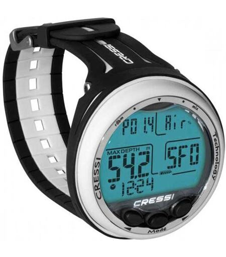 Algoritmo CRESSI RGBM a doppia miscela.Nuovo algoritmo nato dalla collaborazione Cressi - BruceWienke basato su modello Haldane integrato con fattori RGBM per un calcolo decompressivo sicuro nelle ripetitive multi-day e nelle immersioni con miscela.Software in grado di gestire due diverse miscele iperossigenate selezionabili durante l´immersione.Caratteristiche:- Tessuti: 9 con emitempi di saturazione compresi tra 2,5 e 480 minuti,- ProgrammaDive: Elaboratore completo dei dati d'immersione, anche con eventuale decompressione, di ogni immersione effettuata ad Aria o Nitrox.- Impostazione completa dei parametri FO2 (percentuale dell'ossigeno) e PO2 (pressione parziale dell'ossigeno) con possibilità di impostazione PO2 tra 1.2 bar e 1.6 bar e della FO2 tra 21% e 99 %.- Possibilità di effettuare un'immersione Nitrox successiva a quella effettuata con aria (anche con desaturazione in corso).- Possibilità impostazione Gage (profondimetro e timer).- Deep Stop inseribile o disinseribile.- Schermo protettivo display sostituibile.- Cambio batteria a cura dell'utente.- Planning: Scrolling della curva di sicurezza.- Cambio di unità di misura dal sistema metrico (metri e °C) al sistema imperiale (ft- °F) a cura dell'utente.- Allarmi acustici e visivi.- Indicatore grafico tossicità ossigeno al CNS.- Display retroluminescente.- Calendario ed orologio incorporato.- Log book (70 h o 60 immersioni) completo di profilo immersione.- Memoria storica delle immersioni.- Possibilità di eventuale Reset totale, utile per il noleggio dello strumento.- Interfaccia PC/Mac con simulatore e profilo d'immersione (NO INCLUIDO) ...