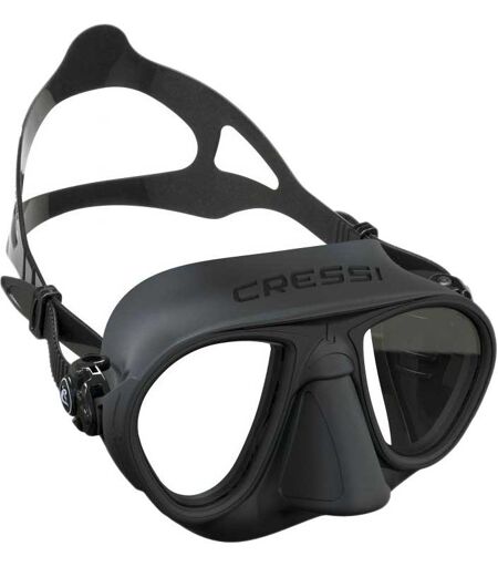 CALIBRO gode di un insieme di vantaggi tecnici che Cressi ha incorporato gradualmente nelle ultime stagioni in diversi modelli. Collega una grande tecnicità con un disegno accattivante e dimensioni medie, tanto del telaio quanto del facciale. La sua struttura da spessore ridotto in un solo pezzo, senza cornice, permette una grande leggerezza (118 g) ed un incredibile approccio del vetro agli occhi con i vantaggi per quanto riguarda la visibilità e la riduzione del volume interno. Il montaggio della maschera è esclusivo ed integra le cornice e la struttura nellinterno del facciale. Questo sistema migliora la tenuta stagna della maschera, annulla qualsiasi possibilità di contatto spiacevole del telaio con la fronte ed elimina la visione della zona centrale del telaio dal interiore. Il facciale ottimizza gli spazi morti e riduce il volume interno fino a soltanto 85 cm3. La distanza vetro-faccia è stata ridotta fino al punto che il facciale non fa il tradizionale effetto ventosa, semplicemente si posiziona sulla faccia assicurando un?ottima tenuta stagna grazie al disegno ed allo studiato rapporto spessore / livello di rigidità del silicone. I vetri inclinati si prolungano tramite morbide linee curve sopra i zigomi, migliorando la visibilità inferiore. Il sottilissimo telaio e l?analizzato attracco con la delicata area dell´osso frontale ottimizzano la visibilità superiore senza danneggiare la capacità di adeguamento. Le fibbie ancorate sul telaio per un?ottima stabilità della maschera e una tensione sempre a determinare dall?utente, sono totalmente pieghevole e basculanti in tutti i sensi. Dunque, la possibilità di scoppio è praticamente nulla. Questo tipo di ancoraggio migliora anche la stabilità della maschera, dato che la tensione della striscia si produce su un elemento rigido e le mosse del condotto respiratore o la faccia non pregiudicano il facciale. ...