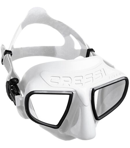 Maschera per immersione profonda - Colore bianco-nero.La distanza vetro/occhio è la più piccola sul mercato e garantisce un angolo di visuale corretto in tutte le direzioni.Lenti in vetro temperato con maggiore spessore.Silicone facciale molto avvolgente.Volume interno ridotto.Fibbie di regolazione istantanea.Utilizzo ideale:apnea, snorkeling e maschera di scorta per immersione tecnica.Volume interno:75 cm³.Dimensioni del telaio:168 x 45 mm.Peso (con cinghia inclusa):118 g. ...