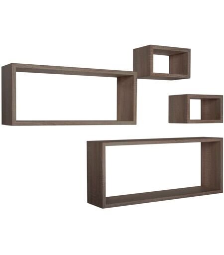 SANITEC - Mensola da parete scaffale cubo set 4 pezzi noce salotto camera soggiorno moderno Merlino