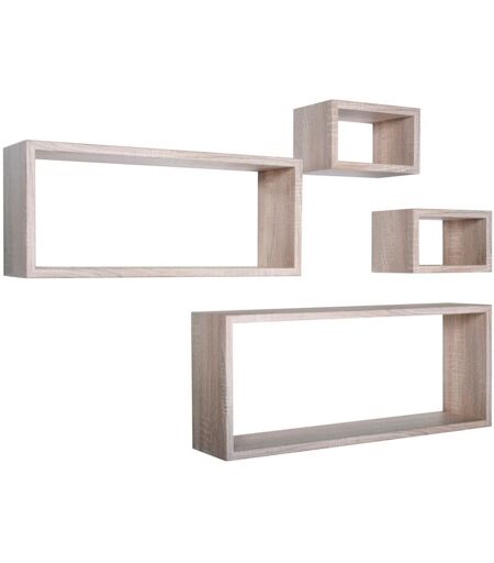 SANITEC - Mensola da parete scaffale cubo set 4 pezzi rovere salotto camera soggiorno moderno Merlino