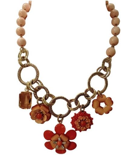 Splendido girocollo con metallo dorato e pietre nei toni caldi dell'arancio, del rosa e del rosso. Un bijoux unico e originale 100% made in Italy. Sodini Bijoux e garanzia di successo. ...