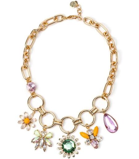 Rendi unico il tuo outfit con questo originalissimo girocollo, elegante e alla moda. Design di una radiosa primavera con splendente catena a grandi maglie che converge su alcuni anelli incatenati che sorreggono dei brillantissimi pendenti dalle straordinarie forme di insettini e fiori, per un unicum fresco e luminoso. Un accessorio perfetto in qualunque occasione, nelle sue cromie multicolore e oro. Logo Sodini sullestensione.Materiali: ottone, acciaio, cristalli, resina. Lunghezza 43 + 5 cm. Chiusura a moschettone. ...