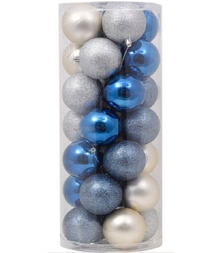 COSE DA CASA - 28 Palle a sfera palline cm 8 per decorazione albero di natale blu e argento addobbi pacco misto abbinamento bellissimo