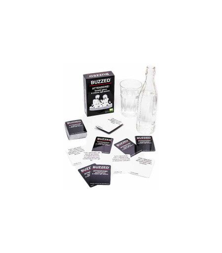 Buzzed e' un party game e anche un drinking game che si spiega in due minuti ma ti coinvolge per ore! Pesca una carta, leggila a voce alta, chi si riconosce in quello che c'e' scritto nella carta, beve. Facile, no? Perfetto per una festa a casa, per una serata al pub o nel locale che odi, ma in cui vai solo per farti vedere con la camicia. Buzzed e' un giocone in qualsiasi situazione, basta tirare fuori la scatola, ordinare qualcosa da bere e cominciare a giocare! Prepara un bicchiede (o due), inizia a pescare le carte e leggile a voce alta. Quante volte dovrai bere? Basta leggere le carte per capire come si gioca... teniamo le cose piu' facili possibili, visto i soggetti che giocheranno! Il giocatore di turno legge la carta e dovra' bere (e insieme a lui gli altri secondo quello che dice la carta), dopodiche' si continua il giro. L'unica cosa che puoi mischiare e' un bicchiere d'acqua tra un giro e l'altro, tanto per non finire il gioco steso sul tavolino. Bevi sempre responsabilmente (ma divertiti comunque!) ...