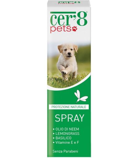 cer'8 pets SPRAY - Descrizione Spray creato realizzando una nuova formula concentrata, basata su ingredienti naturali al 100%: - olio di Neem - olio essenziale di lemongrass - olio essenziale di basilico, titolato in linalolo. La formula è arricchita con: - vitamina E, che rende il pelo più lucido … ...