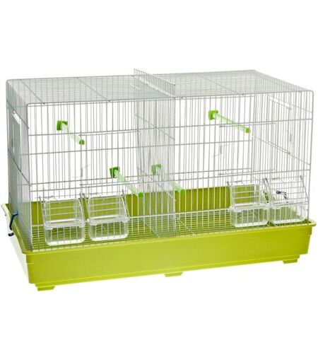 Gabbia Cova doppia completa di accessori con tetto piatto per uccelli Marca: Ferribiella Misura: 58 x 32 x 37 cm Materiale: plastica e metallo Questa gabbia per uccelli viene fornita completa di accessori come mostra la fotografia. Eventualmente può cambiare il colore delle componenti in plastica. ...