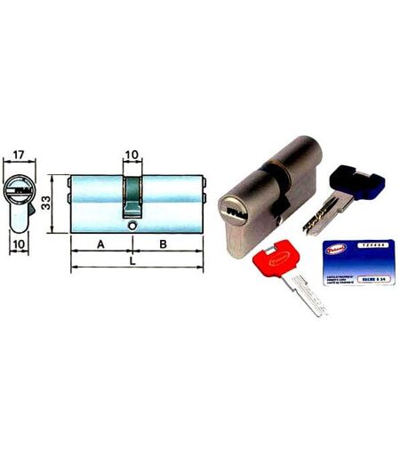 Cilindro ottone profilo europeo 6 perni attivi dicombinazione arrotondati Protezione antitrapano Carta di proprieta' 5 chiavi + 1 chiave cantiere cod.82037 ...