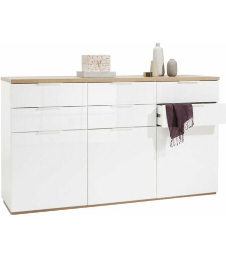 LLB LIVING LIFE BED Madia multiuso 'Mundi' 3 ante e 6 cassetti bianco laccato arredamento moderno h 102 cm -Rovere
