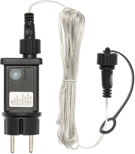 Alimentazione SMART Connect Plus Trasformatore 31V 15W, Portata Max 2500 led, Memory Controller 7 giochi di luce selezionabili + Luce Fissa integrato nel Trasformatore, uso Esterno, Cavo Trasparente 4m, Scatola EcoPack (SCE Art. SC TRI-C 15W C). ...