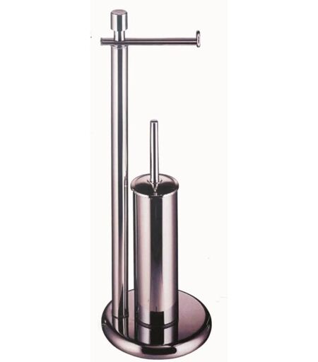 LGVSHOPPING Piantana Bagno con Porta Rotolo e Porta Scopino in Acciaio Cromato H59 x L20 cm