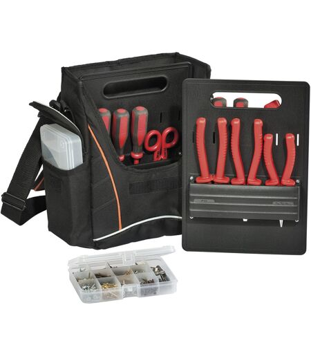 Caratteristiche generali: Borsello con due pannelli removibili porta utensili con sistema PSS. Tracolla regolabile e maniglia. Due cassettini porta minuteria (Art. WL 01 - WL 02). dimensioni : 230 x 110 x320 peso 1,5kg ...