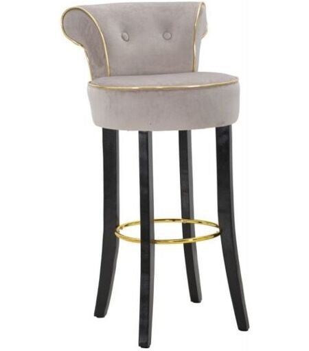 Sgabello bar rotondo imbottito in velluto sintetico con schienale con poggiapiedi in metallo dorato. La forma semplice e le linee essenziali lo rendono perfetto per essere combinato a qualsiasi tipo di arredo. ...