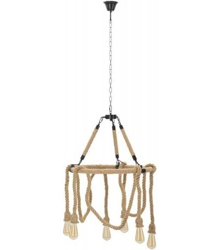 Lampadario rotondo in metallo e corda con 6 punti luce dal design semplice che richiama la vita nei casali di campagna. ...