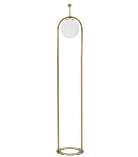 Piantana in metallo dorato dalle linee semplici con elegante sfera paralume in vetro bianco. ...