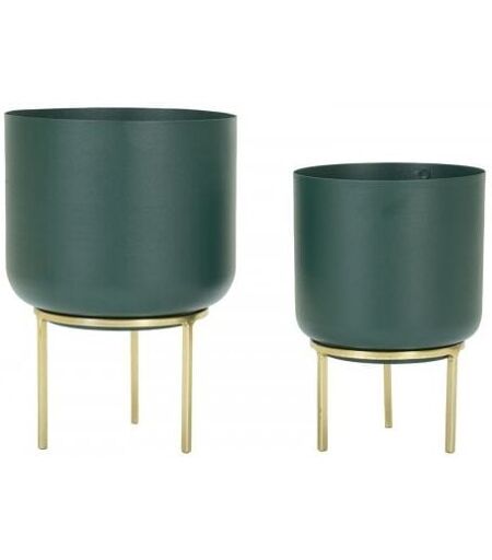 Set di due porta vasi verde con base dorata, elegante e moderno, ideale per valorizzare piante con stile e raffinatezza. ...