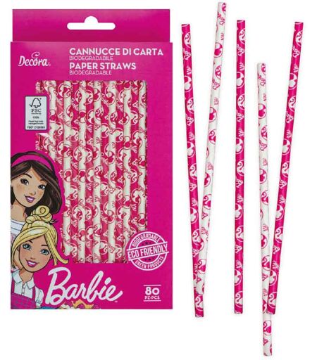 Decora 80 Cannucce Biodegradabili In Carta Barbie 21 Cm Ø6 Mm