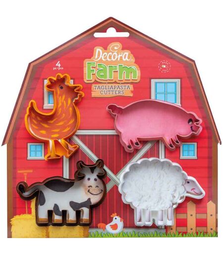 Decora Set 4 Cutters Tagliapasta In Plastica Animali Gallo, Maialino, Pecora E Mucca