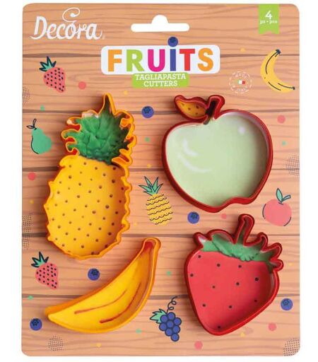 Decora Set 4 Cutters Tagliapasta In Plastica Frutta Ananas Banana Mela Fragola