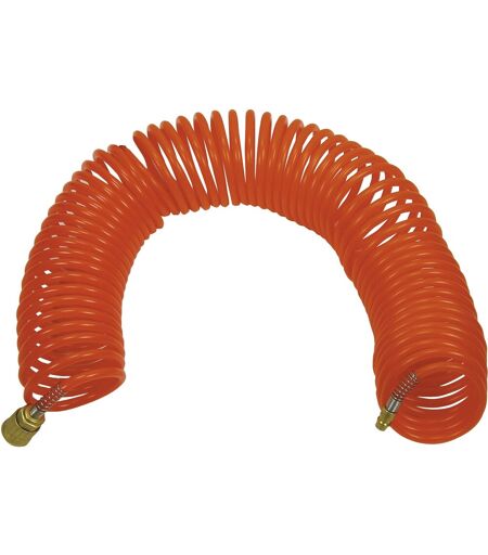 Il tubo a spirale per compressore permette un flusso d`aria costante ed efficiente nei sistemi pneumatici. Ha una pressione massima di 8 bar, una lunghezza di 15 metri e un diametro del tubo di 6x8 mm. Gli attacchi rapidi universali permettono di collegare facilmente il tubo al compressore e ad altri attrezzi pneumatici. Inoltre, la sua costruzione in nylon lo rende resistente agli agenti atmosferici e alle alte temperature, permettendo così un funzionamento sicuro e affidabile nel tempo. Colore arancione. ...