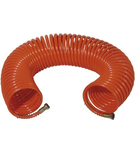 Il tubo a spirale per compressore permette un flusso d`aria costante ed efficiente nei sistemi pneumatici. Ha una pressione massima di 8 bar, una lunghezza di 10 metri e un diametro del tubo di 6x8 mm. Gli attacchi a baionetta permettono una facile installazione e rimozione del tubo, rendendo così la manutenzione del sistema molto semplice. Inoltre, la sua costruzione in nylon lo rende resistente agli agenti atmosferici e alle alte temperature, permettendo così un funzionamento sicuro e affidabile nel tempo. Colore arancione. ...