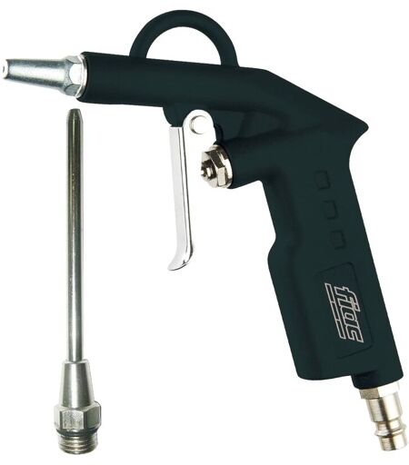 Pistola per il soffiaggio di costruzione semplice ed affidabile con ugello da 2 mm, che può essere impiegata per eliminare la polvere che si deposita su filtri, all'interno del PC, in corrispondenza delle prese di corrente e in tanti altri luoghi. Viene fornita completa di un ugello di ricambio a collo lungo, che consente di raggiungere le zone più difficili. Consumo di aria stimato in 125 l/min. Può essere utilizzata anche per asciugare rapidamente le superfici. Grazie al suo attacco universale può essere collegata tramite i tubi flessibili più comuni al compressore. ...