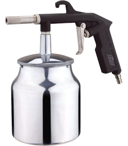 Pistola per la sabbiatura con serbatoio da 1000ml, dotata di ugello da 6mm, adatta per l'utilizzo con granulato con dimensioni comprese tra 0,2 e 0,8mm. Grazie al serbatoio consente di muoversi facilmente durante la lavorazione. ...