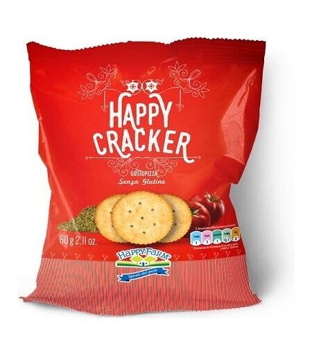 HAPPY FARM HAPPY CRACKERS GUSTO PIZZA Descrizione Gustosi cracker al gusto pizza. Ingredienti Fecola di patate, olio di girasole altamente oleico, farina di mais, concentrato di pomodoro, amido di riso, zucchero, destrosio, sale, lecitina di soia, spezie (origano), lievito di birra, agenti lievitanti (ammonio bicarbonato), aromi naturali. Senza glutine Caratteristiche nutrizionali Valori mediPer 100 g*GDA% Energia1997 kj / 476 kcal1 Grassi Di cui acidi grassi saturi21 g 1,6 g1 - Carboidrati Di cui zuccheri69 g -0,1 - Fibre2,7 g- Proteine1,5 g- Sale2,9 g- *Assunzione di riferimento (adulto medio) Conservazione Conservare a temperatura ambiente. Validità a confezionamento integro: 12 mesi. Formato Confezione da 60 g Cod. 231777 ...