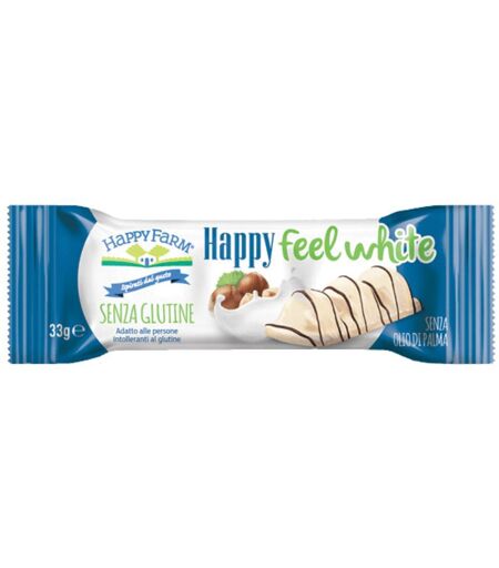 Happy Farm - Happy feel white - Descrizione Croccante wafer ricoperto al cioccolato bianco, con all'interno un morbido ripieno di nocciola. Senza olio di palma. - Ingredienti Zucchero, cioccolato bianco (26,5%): zucchero, burro di cacao, latte intero in polvere (23,5%); emulsionante: lecitina di so… ...