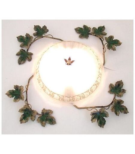 PLAFONIERA BACCO VERDE LAMPADE LAMPIONE LANTERNA APPLIQUE Un'allegra collezione di lampade abilmente lavorate, ispirata alla tradizione italiana per il buon vino, tra le più apprezzate al mondo. La plafoniera "Bacco" è formata da una coppa di vetro travertino con un decoro floreale sul bordo, inserita fra rigogliosi tralci di vite in ferro battuto. Le foglie sono state minuziosamente cesellate dagli artigiani della Cruccolini, dettagli che attribuiscono ai nostri lampadari un valore superiore. Le lampade "Bacco" sapranno arricchire gli ambienti con brio ed eleganza. Da abbinare agli altri complementi della collezione. Dimensioni: 58 â x 58 ↗ x 11 â cm Paralume: Vetro travertino bianco con decoro floreale bianco Consiglio d'uso: Lampada per l'illuminazione di saloni, camere e patio. Si può installare sia a parete che a soffitto ed è un'ottima soluzione per locali come enoteche e wine bar. 1 lampada E27 max 60 W - IP40 - Uso interno - 220-240 V / 50 Hz - Lampadine escluse - Garanzia ...
