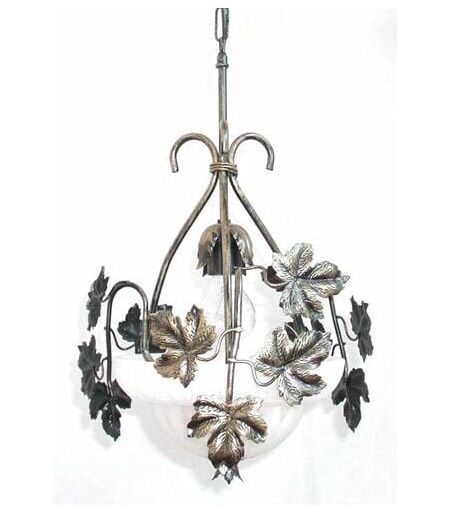 LAMPADARIO BACCO ORO LAMPADE LAMPIONE LANTERNA APPLIQUE LAMPADARIO BACCO 1 luce Cruccolini Un'allegra collezione di lampade abilmente lavorate, ispirata alla tradizione italiana per il buon vino, tra le più apprezzate al mondo. Il lampadario "Bacco" è formato da una coppa di vetro travertino con un decoro floreale sul bordo, inserito fra rigogliosi tralci di vite in ferro battuto. Le foglie sono state minuziosamente cesellate dagli artigiani della Cruccolini, dettagli che attribuiscono ai nostri lampadari un valore superiore. Le lampade "Bacco" sapranno arricchire gli ambienti con brio ed eleganza. Da abbinare agli altri complementi della collezione. Dimensioni: à 32 x 50 â cmParalume: Vetro travertino bianco con decoro floreale à cm 25 Massima estensione: 100 â cm Lunghezza catena: 50 â cmConsiglio d'uso: Lampadario ideale per l'illuminazione di cucine, saloni e patio. Ottimo anche per enoteche e wine bar. LC30 - Vetro travertino bianco con decoro floreale oroLC30B - Vetro ...