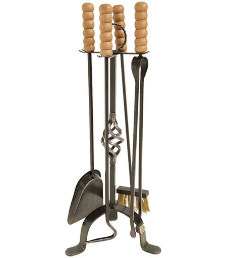 Kit Accessori Camino "noce" In Ferro Battuto E Legno ...