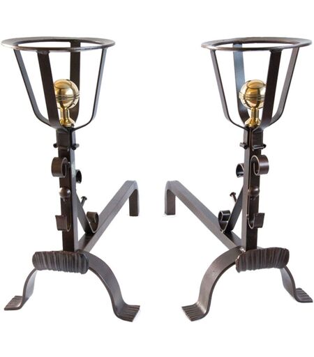 CRUCCOLINI - coppia di alari ferro battuto rocca 27X62X54 camino caminetto fuoco