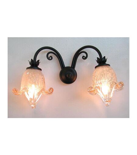 LAMPADA PLAFONIERA APPLIQUE LANTERNA EMOZIONI 2 LUCI CM.30X20 NERO/RUGGINE APPLIQUE EMOZIONI 2 LUCI Cruccolini Elegante applique a 2 luci in ferro battuto forgiato a mano, color ruggine, rifinito da delicati riccioli di ferro in stile Liberty e paralume in vetro soffiato color ambra di forma floreale. L'applique ''Emozioni'' regala bellezza e quel tocco di classe, tipico dello stile Art Nouveau. Abbinabile agli altri complementi della collezione.Dimensioni: 32 â x 16 ↗ x 20 â cm. (sporgenza max cm. 16)Consiglio d'uso: L'applique ''Emozioni'' è stata pensata per illuminare e arredare qualsiasi stanza della vostra casa, o della vostra attività . 2 lampade E14 max 40 W - IP40 uso interno - 220-240 V / 50Hz - lampadine escluse - garanzia 5 anni ...