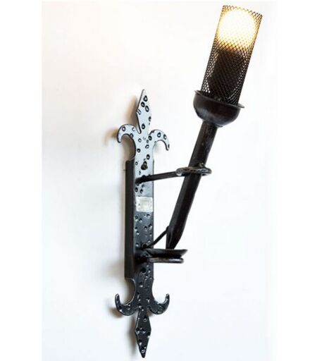 LAMPADE LINEA FORGIA LAMPADA A MURO APPLIQUE TORCIA SIENA PICCOLADi ispirazione medievale, questa robusta torcia è realizzata interamente in ferro battuto forgiato a mano.La torcia ''Siena'' è costituita da una base sapientemente forgiata a mano dai nostri artigiani e da un'asta forgiata che sostiene la coppa porta lampada.Le patinature argento su fondo nero danno al prodotto una finitura invecchiata, esaltando allo stesso tempo i preziosissimi dettagli di lavorazione.Queste lampade sono in grado di trasformare qualsiasi ambiente in un vero e proprio castello.Abbinabile agli altri complementi della collezione.Dimensioni: 10 â x 22 ↗ x 40 â cmConsiglio d'uso: Le nostre torce perfette lampade da muro, sono ideali per taverne e saloni rustici ...