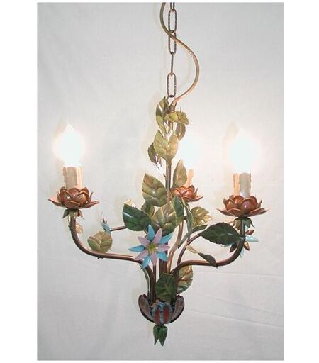 LAMPADARIO CAMELIA A 3 LANTERNA APPLIQUE LAMPIONE LAMPADE La casa si riempie di romanticismo ed atmosfere primaverili con il coloratissimo lampadario a 3 luci Camelia. Realizzato in vero ferro battuto lavorato a mano come da tradizione italiana, il lampadario Camelia è un romantico tripudio di foglie, colori e camelie fiorite, in grado di trasformare qualsiasi stanza in una moderna foresta incantata. Le 3 lampadine permettono una diffusione della luce ottimale ed uniforme. Da abbinare agli altri complementi della collezione. Dimensioni: à 40 â x 50 â cmMassima estensione: 100 â cmLunghezza catena: 50 â cmConsiglio duso: Lampada ideale per illuminare e arredare camere da letto e soggiorni in stile romantico. ...