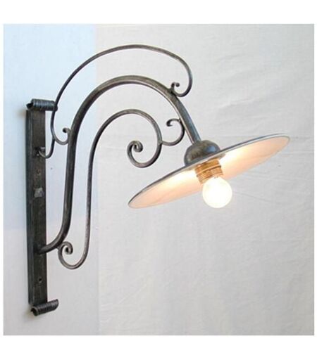 LANTERNA APPLIQUE IN FERRO BATTUTO ELEFANTINO PIATTO CRUCCOLINI LANTERNE LAMPADA PLAFONIERA APPLIQUE PIATTO 1 luce Cruccolini Lampada dal design ispirato all'illuminazione degli anni '50, quando l'energia elettrica raggiungeva le case degli italiani. Elemento caratterizzante era il disco in lamiera che proteggeva la lampadina dalle intemperie. I nostri designer hanno reso attuale questo cult dell'illuminazione riadattandolo ai canoni moderni. La struttura è in ferro nero con patinature argento, impreziosita da riccioli forgiati a mano. Il piatto in ferro è smaltato a caldo, processo che ne rende la superficie lucida e brillante proprio come negli anni '50, ed intensifica la luce riflessa. L'applique "Piatto" è stata progettata per resistere a lungo esposta agli agenti atmosferici. Da abbinare agli altri complementi della collezione.Dimensioni: 27 â x 50 ↗ x 50 â cmParalume: Piatto smaltato à cm 27 Consiglio d'uso: Applique progettata per illuminare gli ambienti esterni come il ...