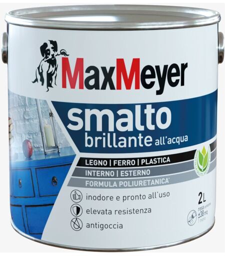 MAX MEYER MaxMeyer Smalto All'Acqua Poliuretanico Brillante, Bianco, 2L